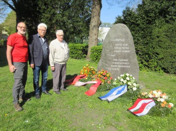 Auf dem Foto: Wolf Stötzel, Georg Deventer, Ernst Söder am Gedenkstein in Lippstadt