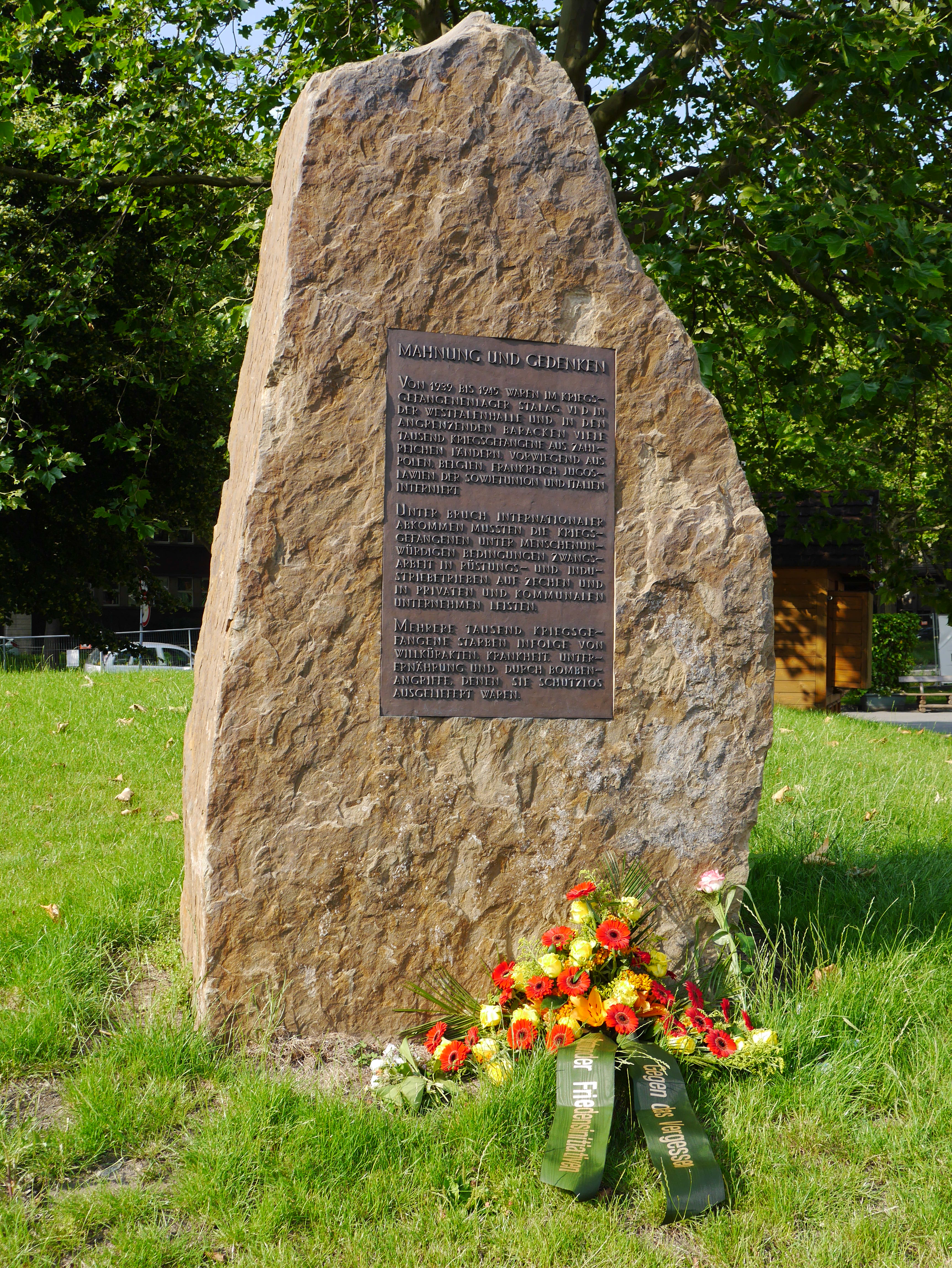 Für viele Menschen ist die Westfalenhalle in Dortmund mit schönen Erinnerungen an bewegende Konzerte, an spannende Sportereignisse, an interessante politische Veranstaltungen und begegnungsreiche Messen verbunden. Wir sollten aber niemals vergessen, dass dieser Ort für viele Menschen eine ganz andere Bedeutung hatte. Er war ein Ort des Leides und der Not. Ein Ort wo „manche Brust ein Seufzer dehnet, will wir hier gefangen sind“, wie das Moorsoldatenlied sagt. Und mehr noch, für tausende Menschen war es ein Sterbeort. Im Dortmunder Stadtarchiv befindet sich das Totenbuch für sowjetische Kriegsgefangene mit mehr als 3000 Einträgen über Todesfälle aus dem Stalag VI D an der Westfalenhalle.