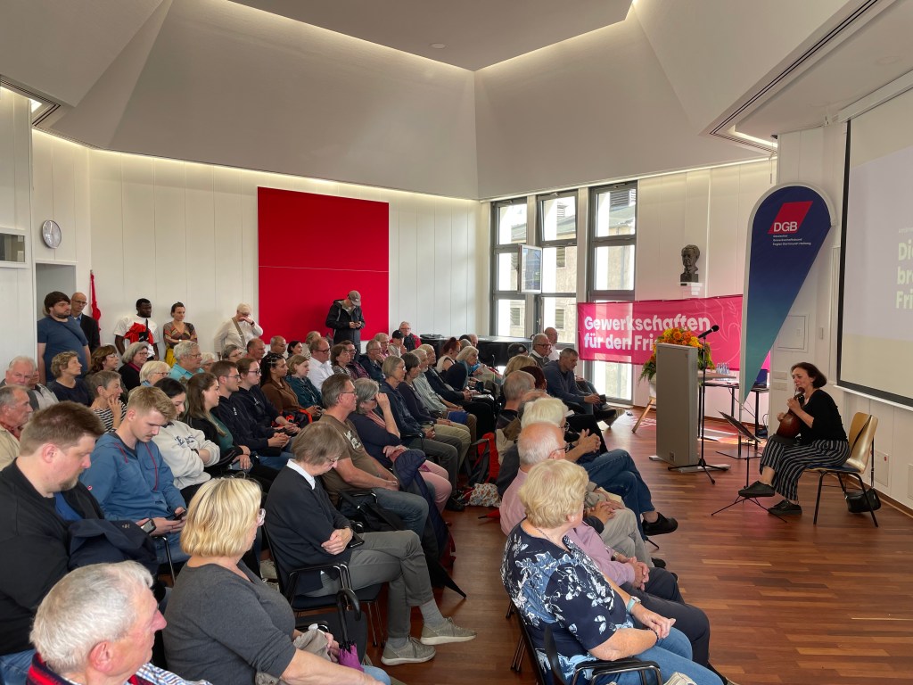 Bericht zur Veranstaltung am Antikriegstag, 1. September 2023 Veröffentlicht am 5. September 2023 von irpk Unseren Bericht finden Sie hier: bericht_antikriegstag-2023_bearbeitetHerunterladen Foto: Förderverein Steinwache – Int. Rombergparkkomitee e.V. Teilen Sie dies mit: Klick, um auf Facebook zu teilen (Wird in neuem Fenster geöffnet) Facebook Klicke, um auf X zu teilen (Wird in neuem Fenster geöffnet) X Gefällt mir Wird geladen … Ähnliche Beiträge