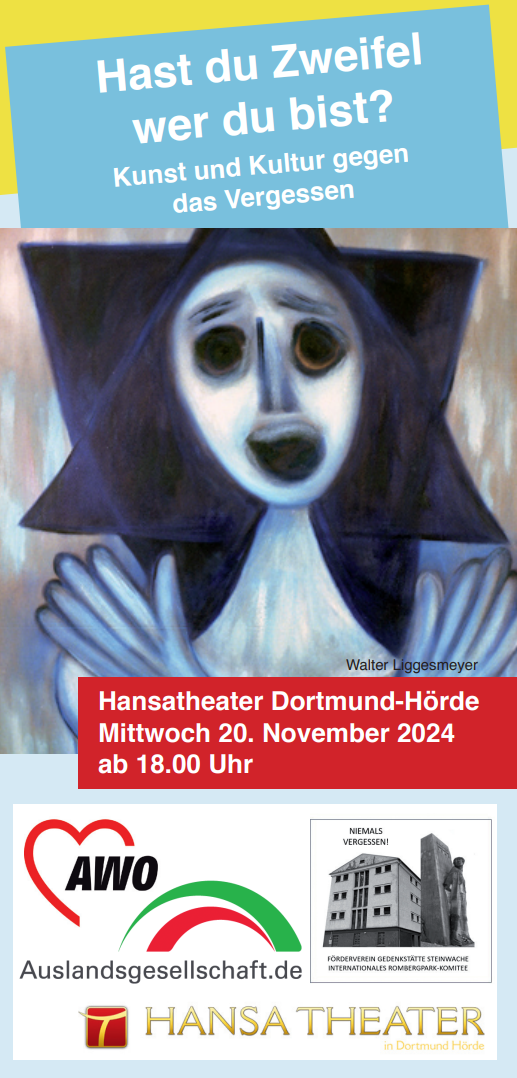 Die Veranstaltung wird durchgeführt von einem Initiativkreis der Dortmunder Künstlerinnen und Künstler: Christiane Köhne, Helga Hoicke, Yvonne Wilken, Babette Seim, Günter Rückert und Mathias Schubert, dem Atelier „WERKstattArbeit“ und mit dem Nachlass von Walter Liggesmeyer (1938-2017) in Kooperation mit dem Förderverein Gedenkstätte Steinwache-Internationales Rombergparkkomitee e.V. und dem AWO Unterbezirk Dortmund mit den beiden Ortsvereinen Körne/ Wambel und Dortmund-Mitte und mit Unterstützung der Auslandsgesellschaft.de